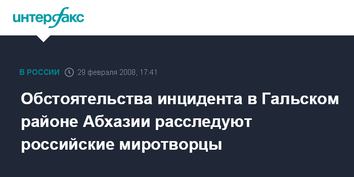 Москва. 29 февраля. INTERFAX.RU - Российские миротворцы расследуют обстоятельства инцидента в районе села Набакеви Гальского района Абхазии, где, по данным грузинских СМИ, в пятницу произошла перестрелка.
