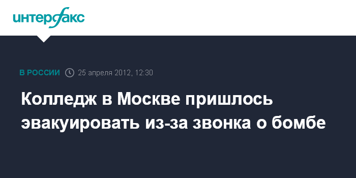 Москва. 25 апреля. INTERFAX.RU - Колледж эвакуирован на северо-западе Москвы из-за угрозы взрыва, сообщил "Интерфаксу" источник в правоохранительных органах.