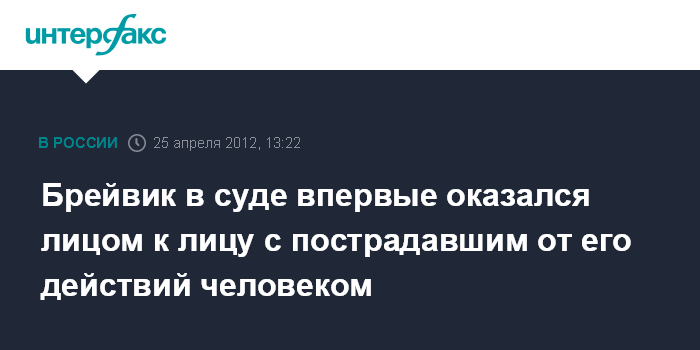 Осло. 25 апреля. INTERFAX.RU - Показания в суде, рассматривающего дело норвежского террориста Андерса Брейвика, в среду дает мужчина, получивший ранения в результате его нападения.