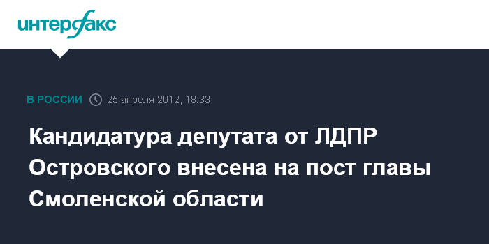 Кандидатура депутата от ЛДПР Островского внесена на пост главы Смоленской области
