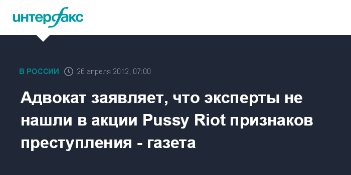 Адвокат заявляет, что эксперты не нашли в акции Pussy Riot признаков преступления - газета