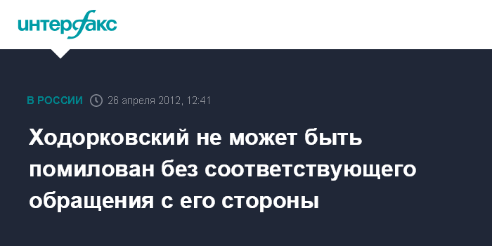 Москва. 26 апреля. INTERFAX.RU - Президент РФ Дмитрий Медведев заявил, что без обращения экс-главы НК "ЮКОС" Михаила Ходорковского не может быть его помилования.