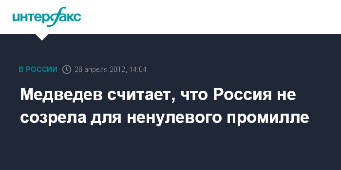 Медведев считает, что Россия не созрела для ненулевого промилле