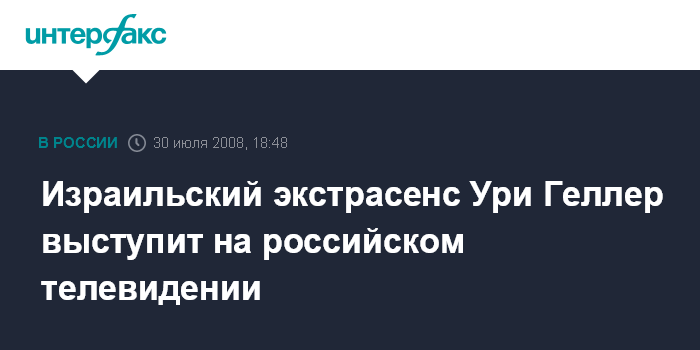 Москва. 30 июля. INTERFAX.RU - Телеканал "Россия" в новом телесезоне представит шоу "Феномен" с участием израильского парапсихолога Ури Геллера, знаменитого большим количеством разнообразных трюков, включая остановку часов Биг Бэн в Лондоне.