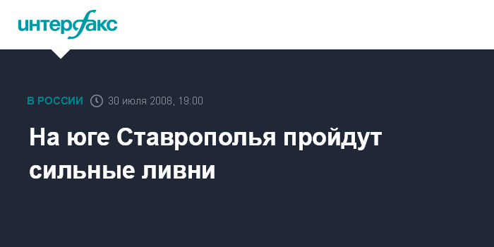 Москва. 30 июля. INTERFAX.RU - Сильные дожди прогнозируют синоптики в ближайшие сутки в южной части Ставропольского края. "Согласно прогнозу Ставропольского гидрометцентра, вечером 30 июля и в ночь на 31 июля в южной части края - преимущественно в Александровском, Предгорном, Минераловодском, Георгиевском, Новоселицком, а также в Благодарненском и Буденновском районах - ожидаются сильные дожди", - сообщили агентству "Интерфакс" в пресс-службе ГУ МЧС РФ по Ставропольскому краю.