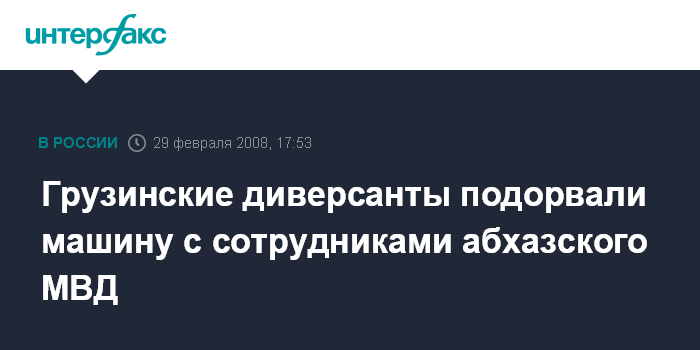 "Сегодня около 15 часов между населенными пунктами Набакеви и Отобая на фугасе подорвалась автомашина с сотрудниками правоохранительных органов Абхазии. После этого по автомобилю членами грузинской диверсионной группы был открыт огонь. Три сотрудника МВД Абхазии получили ранения различной степени тяжести", - заявил Р. Кишмария.