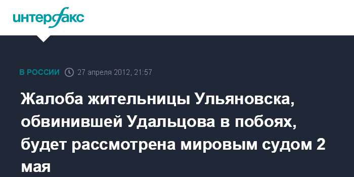 Ульяновск. 27 апреля. INTERFAX.RU - Мировой суд Ленинского района Ульяновска 2 мая рассмотрит заявление по обвинению координатора Левого фронта Сергея Удальцова в избиении местной жительницы Анны Поздняковой, сообщил в пятницу агентству "Интерфакс-Поволжье" представитель суда.
