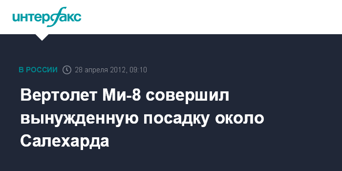 Салехард. 28 апреля. INTERFAX.RU - Вертолет Ми-8 авиакомпании "Ямал" совершил вынужденную посадку в 37 км от Салехарда накануне вечером, сообщает пресс-служба ГУ МЧС по Ямало-Ненецкому автономному округу.