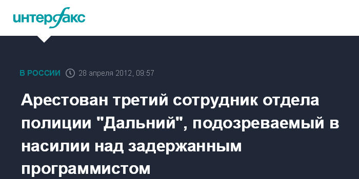Арестован третий сотрудник отдела полиции "Дальний", подозреваемый в насилии над задержанным программистом
