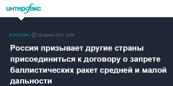 Россия призывает другие страны присоединиться к договору о запрете баллистических ракет средней и малой дальности