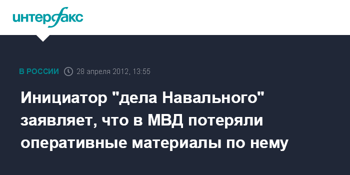 Инициатор "дела Навального" заявляет, что в МВД потеряли оперативные материалы по нему