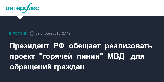 Президент РФ обещает реализовать проект "горячей линии" МВД для обращений граждан