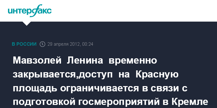 Мавзолей Ленина временно закрывается,доступ на Красную площадь ограничивается в связи с подготовкой госмероприятий в Кремле