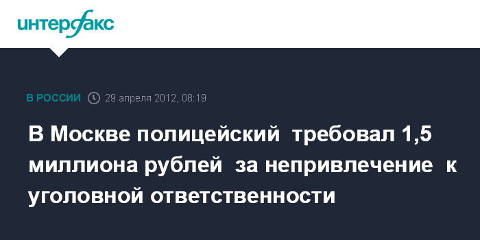 требуют 1,5 млн рублей под надуманным предлогом за непривлечение его к