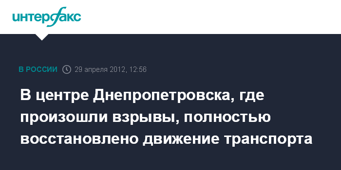 Днепропетровск. 29 апреля. INTERFAX.RU - На проспекте Карла Маркса в Днепропетровске, где в минувшую пятницу произошли 4 взрыва, полностью восстановлено движение автомобильного и электротранспорта. "По проспекту ходят и автомобили, и маршрутки, и трамваи с троллейбусами. Движение транспорта по центральному проспекту К.Маркса осуществляется в обычном режиме ", - сообщил в воскресенье агентству "Интерфакс-Украина" директор департамента транспорта и связи Днепропетровского горсовета Валентин Мовчан.
