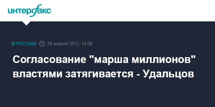 Москва. 29 апреля. INTERFAX.RU - Московские власти продлили срок рассмотрения заявки на проведение оппозицией "марша миллиона" 6 мая в центре Москвы, сообщил лидер "Левого фронта" Сергей Удальцов.