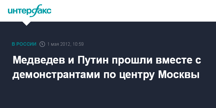 Москва. 1 мая. INTERFAX.RU - Президент РФ Дмитрий Медведев и избранный президент, премьер-министр Владимир Путин во вторник приняли участие в праздничном первомайском шествии в Москве.