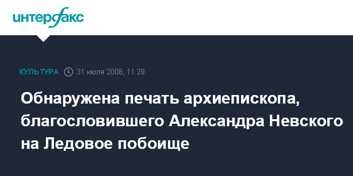 Обнаружена печать архиепископа, благословившего Александра Hевского на Ледовое побоище