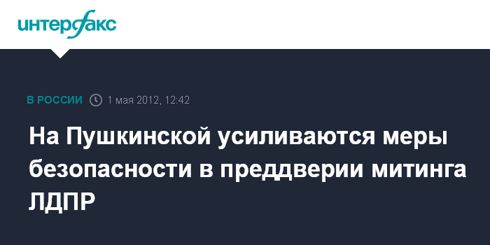 Москва.1 мая. INTERFAX.RU - Сотрудники полиции усилили меры безопасности в районе Пушкинской площади Москвы, где во вторник должен пройти митинг ЛДПР "За русский народ". Как передает корреспондент "Интерфакса", Пушкинская площадь полностью перекрыта металлическими заграждениями. По ее периметру дежурят сотрудники полиции.