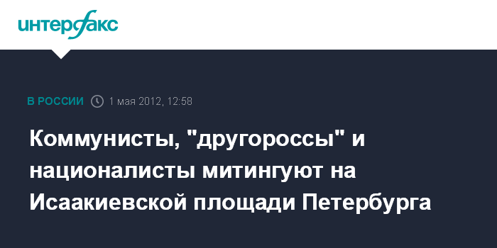 Основная часть колонны провела свой митинг на Дворцовой площади. Другие участники шествия в настоящее время проводят праздничные выступления на Исаакиевской и Конюшенной площадях. Исаакиевская площадь наполовину заполнилась митингующими. Всюду развернуты красные флаги социалистов, имперские полотнища националистов, а также разноцветные знамена профсоюзных и общественных организаций.