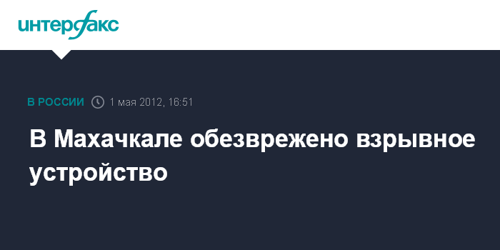Махачкала. 1 мая. INTERFAX.RU - Специалисты-взрывотехники обезвредили взрывное устройство, обнаруженное на улице Шоссе Аэропорта в Махачкале, сообщили "Интерфаксу" в пресс-службу УФСБ России по Дагестану. "Детонатор устройства был разрушен гидродинамическим разрушителем. Взрывчатое вещество находилось в 200-граммовой емкости, оно было с помощью магнитов прикреплено к днищу прицепа автомобиля КАМАЗ, который стоял рядом с автозаправкой "Импульс", - сообщил собеседник агентства.
