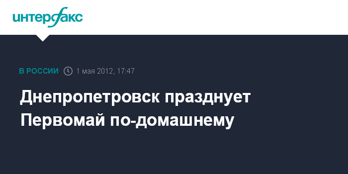 Днепропетровск. 1 мая. INTERFAX.RU - Жители Днепропетровска празднуют 1 мая без массовых мероприятий, поскольку в области запрещено проведение массовых мероприятий до 2 мая в связи со взрывами, прогремевшими 28 апреля. Как передает корреспондент агентства "Интерфакс-Украина", обстановка в городе спокойная. Жители Днепропетровска отмечают этот Первомай в кругу семье дома или отдыхают на природе.