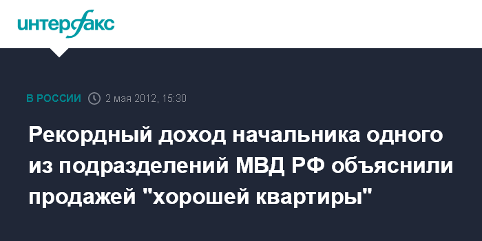 Рекордный доход начальника одного из подразделений МВД РФ объяснили продажей "хорошей квартиры"