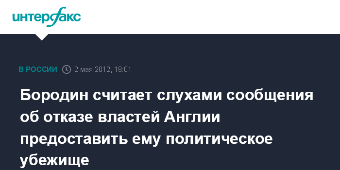 Бородин считает слухами сообщения об отказе властей Англии предоставить ему политическое убежище