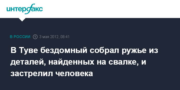 В Туве бездомный собрал ружье из деталей, найденных на свалке, и застрелил человека