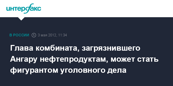 Иркутск. 3 мая. INTERFAX.RU - Иркутская полиция направила в Следственный комитет РФ материалы для возбуждения уголовного дела в отношении руководителя ФГУ "Комбинат Росрезерва "Прибайкалье", из незаконной врезки на нефтепроводе которого в Ангару попало более 300 тонн дизельного топлива.