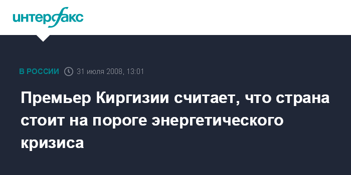 Премьер Киргизии считает, что страна стоит на пороге энергетического кризиса