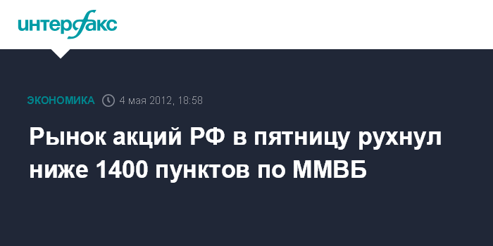 Москва. 4 мая. INTERFAX.RU - Российский рынок акций в пятницу рухнул ниже 1400 пунктов по индексу ММВБ, растеряв остатки роста с начала года на фоне дефицита рублевой ликвидности, негативной динамики мировых фондовых площадок и рухнувшей нефти, что было подогрето слабой статистикой из США.