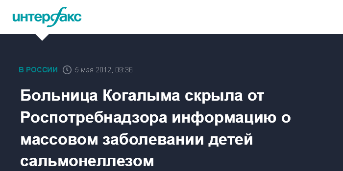 Ханты-Мансийск. 5 мая. INTERFAX.RU - Прокуратура внесла представление главному врачу городской больницы Когалыма, сотрудники которой своевременно не проинформировали управление Роспотребнадзора по Ханты-Мансийскому автономному округу о массовом заболевании воспитанников детского сада сальмонеллезом, сообщили агентству "Интерфакс-Урал" в пресс-службе прокуратуры ХМАО.