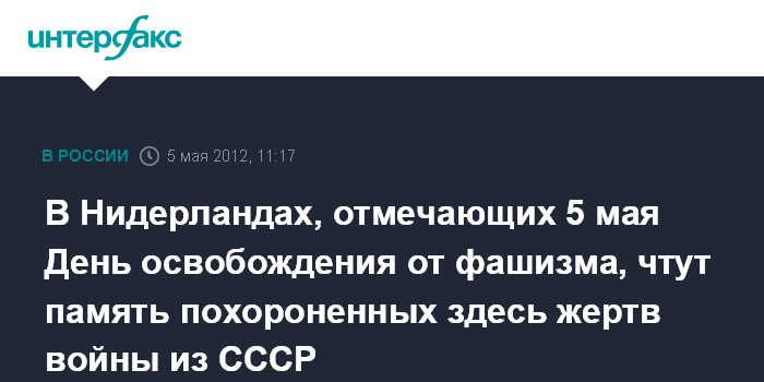 В Нидерландах, отмечающих 5 мая День освобождения от фашизма, чтут память похороненных здесь жертв войны из СССР