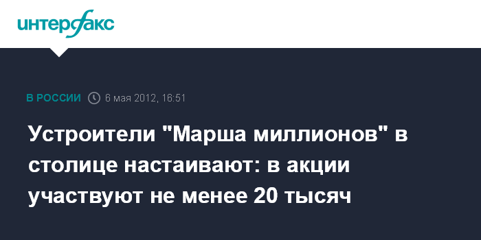 Устроители "Марша миллионов" в столице настаивают: в акции участвуют не менее 20 тысяч