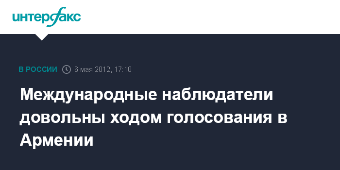 Ереван. 6 мая. INTERFAX.RU - Выборы в парламент Армении проходят спокойно и без грубых нарушений, заявил руководитель Международного экспертного Центра избирательных систем (ICES) Александр Цинкер. "Еще одним плюсом выборов является установка видеокамер на участках. Правда, в некоторых местах нам показалось, что избирателям "помогают". Но, в общем, выборы проходят нормально", - процитировали "Интерфаксу" слова А.Цинкера в пресс-службе ICES.