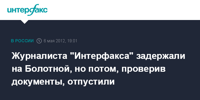 Москва. 6 мая. INTERFAX.RU - Среди тех, кого полиция задержала во время акции оппозиции на Болотной площади в Москве, оказался корреспондент "Интерфакса".