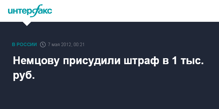 Как передает корреспондент "Интерфакса", суд признал Б.Немцова виновным в нарушении ст. 20.2 (нарушение правил организации массового мероприятия) КоАП РФ.
