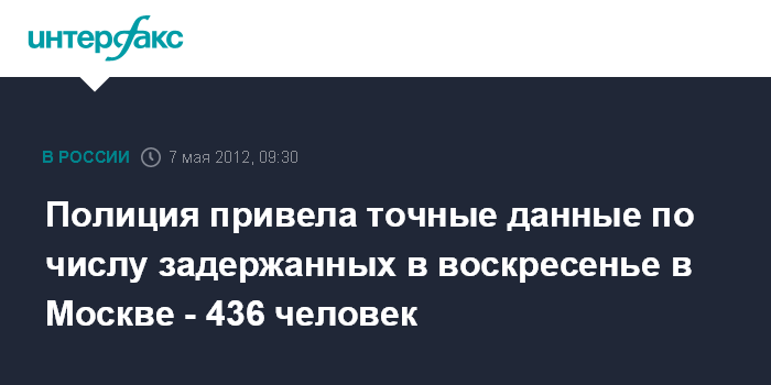 Москва. 7 мая. ИНТЕРФАКС - По уточненным данным, в воскресенье в Москве за различные правонарушения было задержано 436 человек, некоторые до сих пор остаются в отделениях полиции, сообщили "Интерфаксу" в пресс-службе ГУ МВД РФ по Москве.
