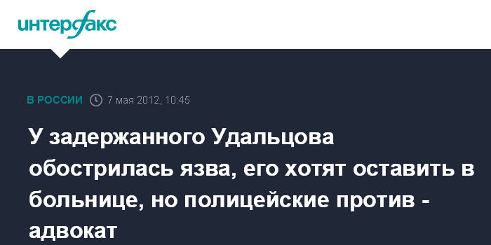 У задержанного Удальцова обострилась язва, его хотят оставить в больнице, но полицейские против - адвокат