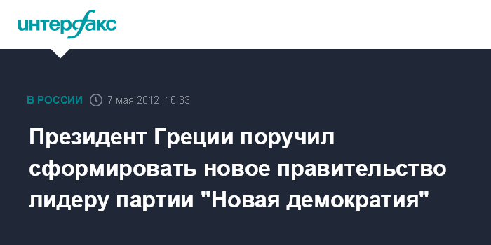 Афины. 7 мая. INTERFAX.RU - Президент Греции Адонис Папульяс в понедельник провел встречу с лидером греческих консерваторов из партии "Новая демократия" Адонисом Самарасом, которому поручил сформировать новое правительство страны.