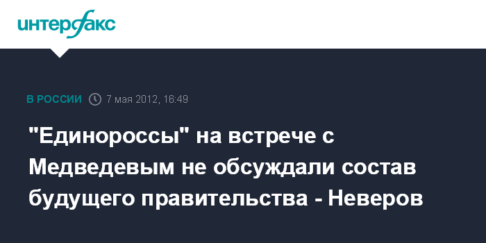 "Единороссы" на встрече с Медведевым не обсуждали состав будущего правительства - Неверов