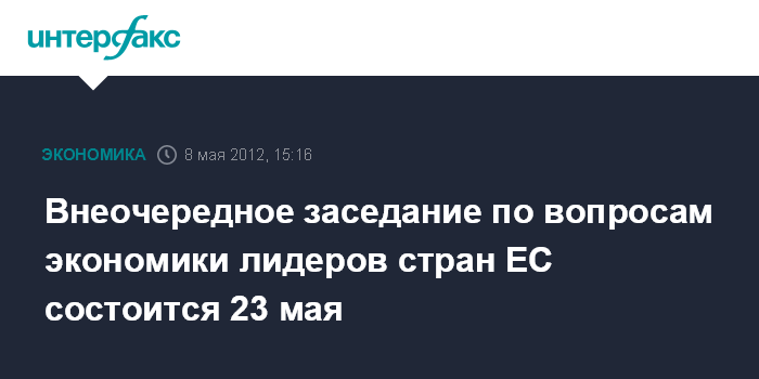 Брюссель. 8 мая. INTERFAX.RU - Неформальное заседание по вопросам экономики лидеров стран-членов Евросоюза пройдет 23 мая, сообщил во вторник на странице в социальной сети "Твиттер" председатель Европейского совета Херман ван Ромпей. По его словам, во встрече примут участие главы государств и правительств стран-членов ЕС. В ходе заседания будут обсуждаться способы ускорения экономического роста ЕС.