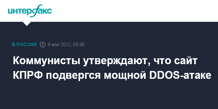 Москва. 9 мая. INTERFAX.RU - КПРФ заявила об атаке на сайт партии после того, как лидер оппозиционного "Левого фронта" Сергей Удальцов заявил, что присоединится к праздничной колонне коммунистов в День Победы. "С двух часов ночи после сообщений о присоединении С.Удальцова к нашей праздничной колонне началась и продолжается DDOS-атака на интернет-сайт партии", - сообщил "Интерфаксу" секретарь ЦК КПРФ, депутат Госдумы Сергей Обухов.