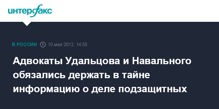 Москва. 10 мая. INTERFAX.RU - В Следственном комитете РФ с адвокатов оппозиционеров Сергея Удальцова и Алексея Навального взяли подписку о неразглашении.