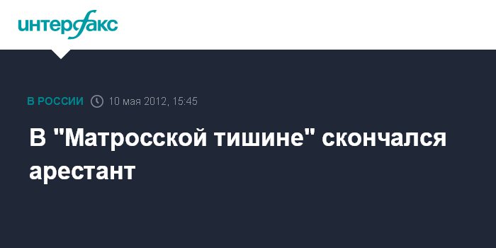 Москва. 10 мая. INTERFAX.RU - Осужденный скончался в следственном изоляторе "Матросская тишина", сообщил в четверг "Интерфаксу" источник в правоохранительных органах.
