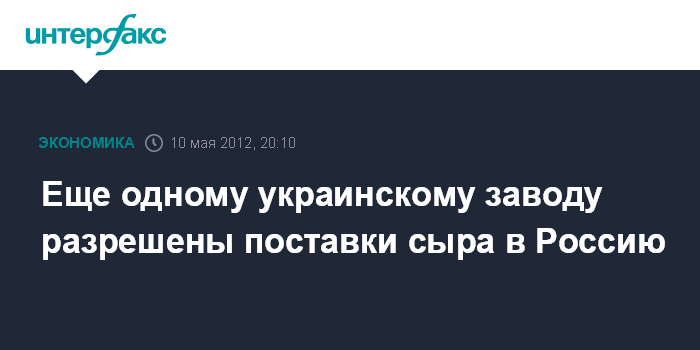 Москва. 10 мая. INTERFAX.RU - Роспотребнадзор считает возможным возобновление поставок на российский рынок сыров четвертого по счету украинского завода - "Дубномолоко", сообщили в пресс-службе ведомства.