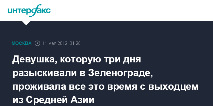 Девушка, которую три дня разыскивали в Зеленограде, проживала все это время с выходцем из Средней Азии