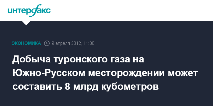 Добыча туронского газа на Южно-Русском месторождении может составить 8 млрд кубометров