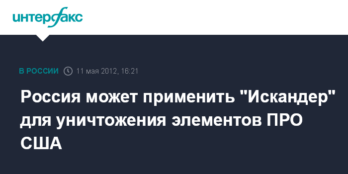 Сочи. 11 мая. INTERFAX.RU - Россия может применить "Искандер" для уничтожения элементов ПРО США, заявил журналистам и.о.министра обороны Анатолий Сердюков.